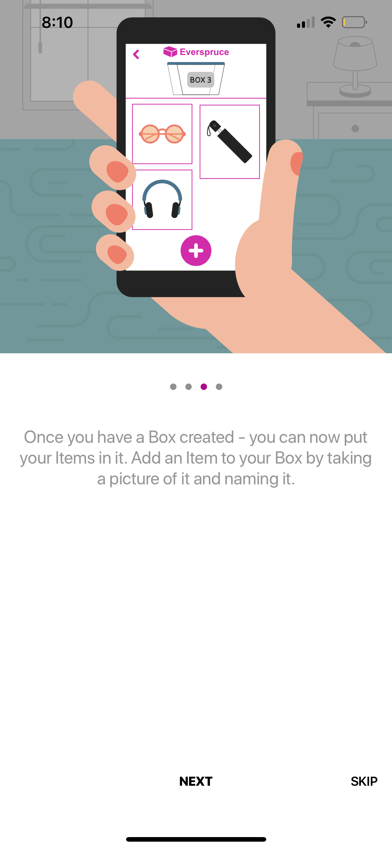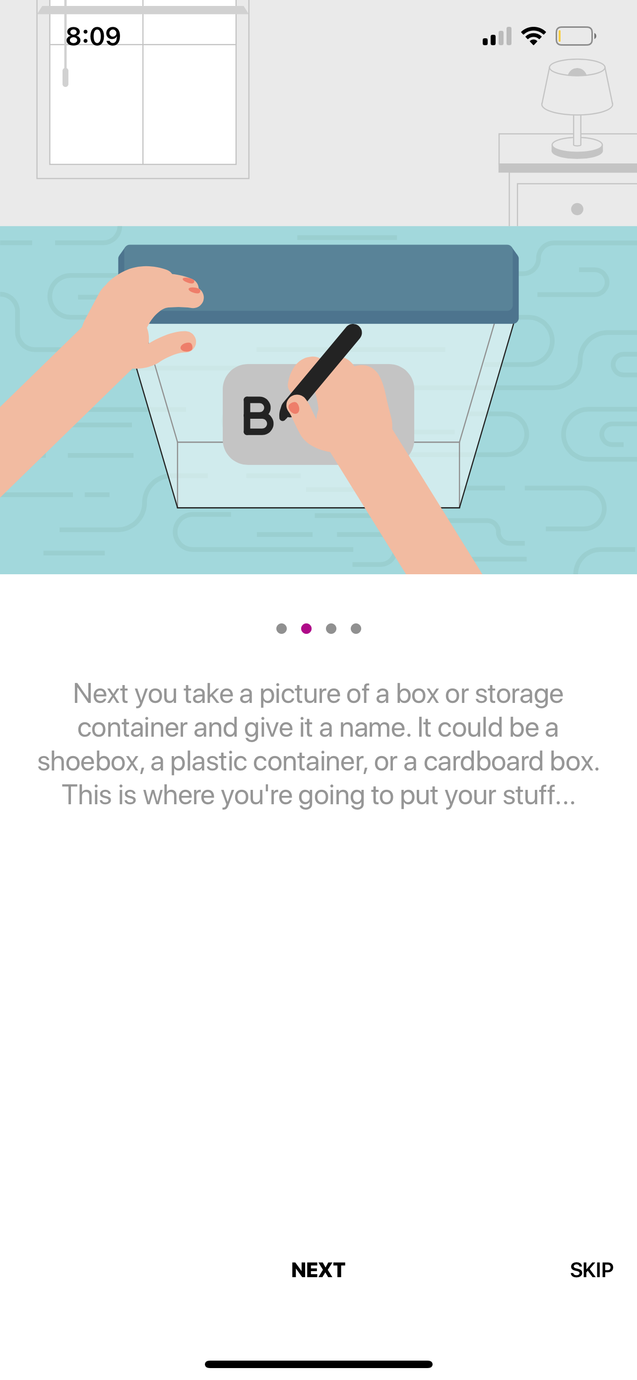 Categories - limited to 3 main categories: areas, boxes, items. Helps simplify and organize the app.